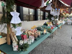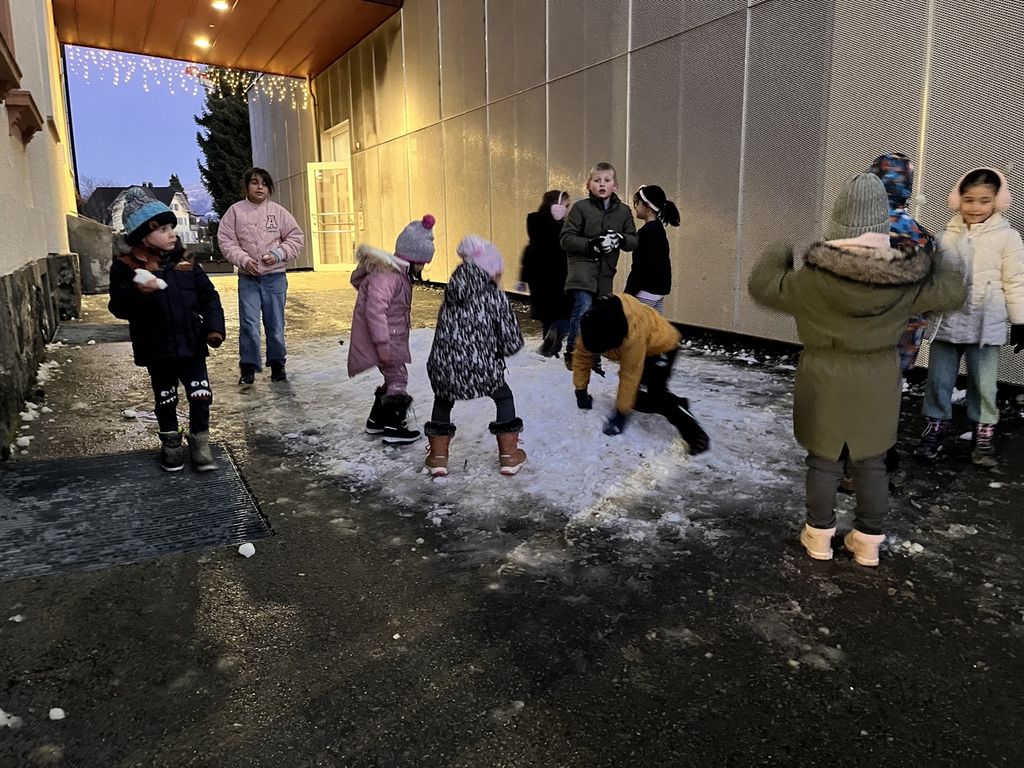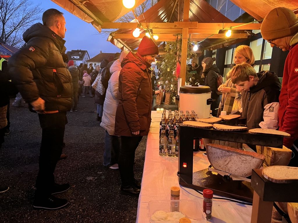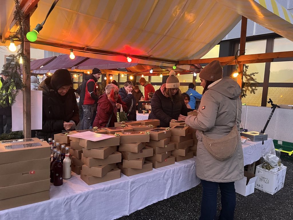 In diesem Jahr wurde das Adventskranzbinden und der Keksverkauf des Elternvereins um eine Attraktion erweitert. Auf dem Pausenhof unserer Schule wurde ein Weihnachtsmarkt mit Ständen aufgebaut, an denen es vieles zu entdecken und kaufen gab. Alle Schüler und Schülerinnen bastelten im Vorfeld gemeinsam mit ihren Lehrpersonen fleißig an den unterschiedlichsten Besonderheiten für diesen Markt. Dabei war von Dekoartikeln bis zur Bruchschokolade für alle Besucher und Besucherinen etwas dabei. Die Schüler und Schülerinnen der vierten Klassen erwiesen sich als gute Rechner und Rechnerinnen und halfen tatkräftig beim Verkauf mit. Durstig und hungrig mussten die Besucher und Besucherinnen selbstverständlich auch nicht bleiben. Beim Stand des Elternvereins konnten Getränke und Raclett-Brote gekauft werden. Eine besondere Überraschung für die Kinder war der eigens hertransportierte Schnee, der zusammen mit dem kalten Wetter und den Lichterketten für vorweihnachtliche Stimmung sorgte.