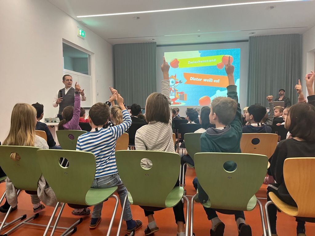 Für den Dreh des neuen Musikvideos von Ingrid Hofer konnten die Schüler und Schülerinnen der 1. und 2. Klassen ihr tänzerisches Talent zeigen. Dabei staunten sie, als tatsächlich Ruby Raptor ebenfalls gekommen war, um mitzutanzen. Die freundliche Dino-Dame sah so täuschend echt aus, dass die Schüler und Schülerinnen ihre Aufregung erst einmal etwas ablegen mussten, bevor gemeinsam getanzt und gefilmt werden konnte.