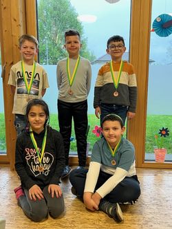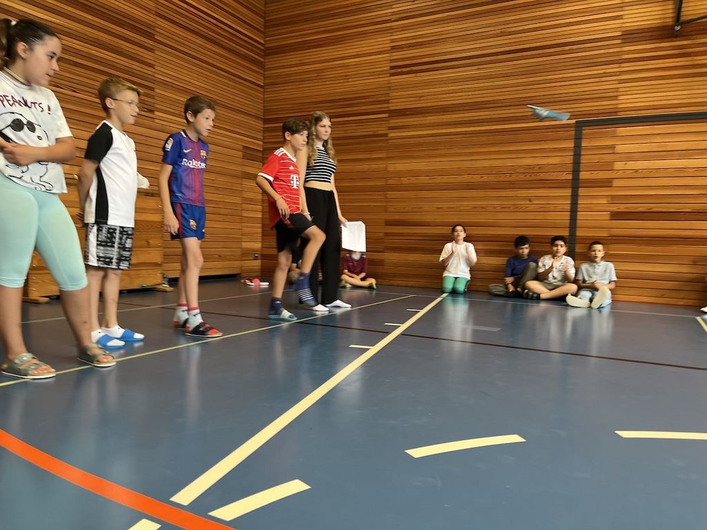 Unter dem Motto „Gesunde Schule“ wurde von 19. bis 23. Juni ein abwechslungsreiches Programm geboten. Dafür wurden die Themen „Psychische Gesundheit“, „Bewegung“ und „Ernährung“ in den Mittelpunkt gestellt. So konnten die Schüler und Schülerinnen im Themenbereich „Psychische Gesundheit“ einen Atemhelfer basteln (um die eigene Atmung sehen, kontrollieren und sich somit selber beruhigen zu können), gemeinsam beim Lachyoga lachen, ihre Muskeln entspannen und lernen, wie man gewaltfrei miteinander kommuniziert. Was gesunde und ungesunde Lebensmittel sind, konnten die Schüler und Schülerinnen beim Themenbereich Ernährung erfahren, gleich selbst eine gesunde Jause zubereiten und selbstverständlich auch genießen. Außerdem standen ein Ausflug zum Kräutergarten Lustenau und eine Kräuterwanderung mit Katharina Endrich speziell für Kinder auf dem Programm. Beim Themenbereich Bewegung lernten die Schüler und Schülerinnen einen gemeinsamen Tanz unter der Anleitung der Choreografen Markus Zmölnig und Elisa, der auch bei der Abschlussolympiade von allen Klassen zusammen aufgeführt wurde. In der Turnhalle konnte angeleitet durch einen Bewegungscoach von ASKÖ ein riesiger Ball und im Bewegungraum der ganze Körper beim Jumping gemeinsam mit Trainerin Simone auf kleinen Trampolinen bewegt werden. Den eigenen Körper spüren konnten die Schüler und Schülerinnen beim Yoga mit Ines Hinteregger Viel Einsatz brauchte es auch beim Schnuppern mit dem Basbeballverein Hard Bulls, wo die Schüler und Schülerinnen den Schläger schwingen durften. Mit den eigenen Klassenlehrpersonen beschäftigten sich die Kinder auch mit dem Thema Haut und hier v.a. damit, was diese schützt. Für die Olympiade am Ende der Projektwoche gestaltete jede Klasse eine eigene Fahne, die stolz beim Fahneneinlauf präsentiert wurde. Am Freitag konnten die Schüler und Schülerinnen ihr Können bei den unterschiedlichsten Disziplinen unter Beweis stellen. Ob beim Kirschkernweitspucken, beim Dosenwerfen, beim Sackhüpfen, beim Jasskartentransport, beim Hausschuhzielwurf, beim Wattebauschpusten, beim Memorylauf, beim Parcours, beim Schätzen, bei der Atemkontrolle und bei den Scherzfragen - alle Schüler und Schülerinnen waren mit viel Spaß und Engagement dabei. Bei der Pausenstation konnten alle noch einmal eine gesunde Jause in der Schulküche genießen. Betreut wurden die Stationen von Schüler und Schülerinnen der 6a Klasse des Gymnasiums Lustenau. Bei der Siegerehrung wurde zusammen getanzt und gespannt gewartet, welche Klasse welchen Platz erreichen konnte. Stolz nahmen jeweils zwei Vertreter bzw. Vertreterinnen die Pokale entgegen. Ein gelungener Abschluss einer sehr abwechslungsreichen Woche mit viel neuen Inputs und selbstverständlich jeder Menge Spaß.